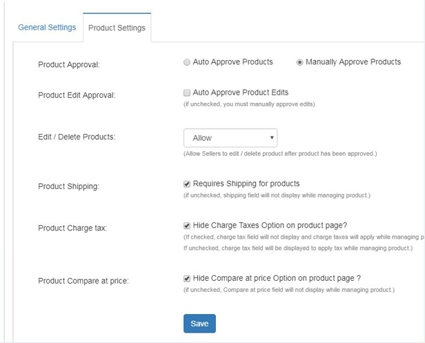 Store admin / owner can manage sellers, review products and stuffs through master admin panel with lots of other store settings